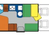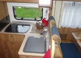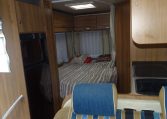 SALON : 4/6 Places 2 Places face à la route + banquette latérale + 2 places sièges cabine pivotants. Table mobile coulissante avec rallonge. Baies, 2 lanterneaux. CUISINE : En L 3 feux. Réfrigérateur 140 L + congélateur tri énergie AES. Placards coulissants. Baie projetante. COUCHAGE : Lit arrière à la française (135 x 190), sommier à lattes, axé coffre, matelas bultex épais Rangements multiples. 2 baies. Lanterneau. Lit avant transversal en transformant le salon. (130 x200). CABINET DE TOILETTE : Grande douche avec 2 cloison acrylique, lavabo wc. Lanterneau. SOUTE : Sous le lit arrière accès extérieur. Coffre sous la banquette latérale. Emplacement 2 bouteilles de gaz. EQUIPEMENTS :