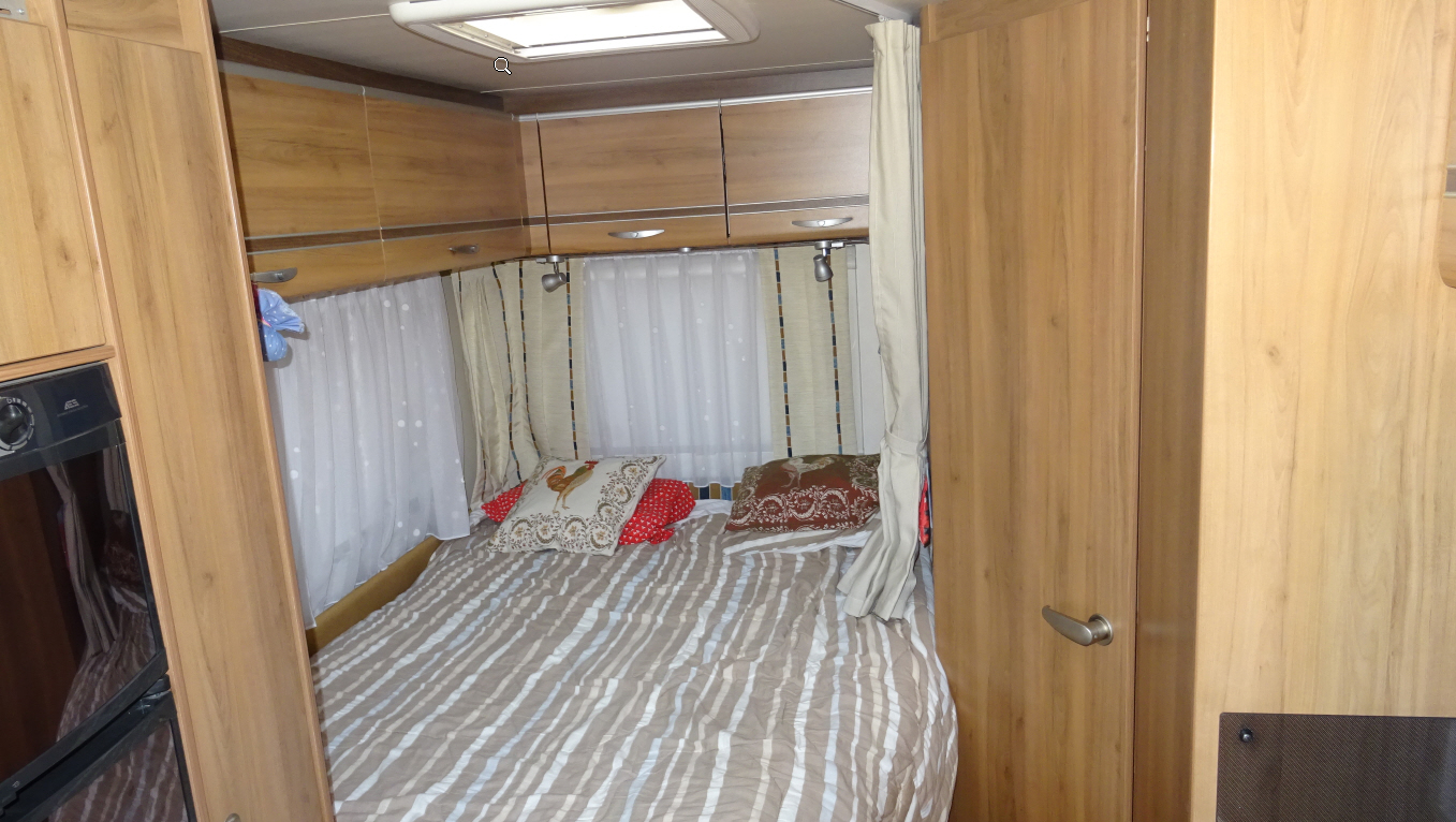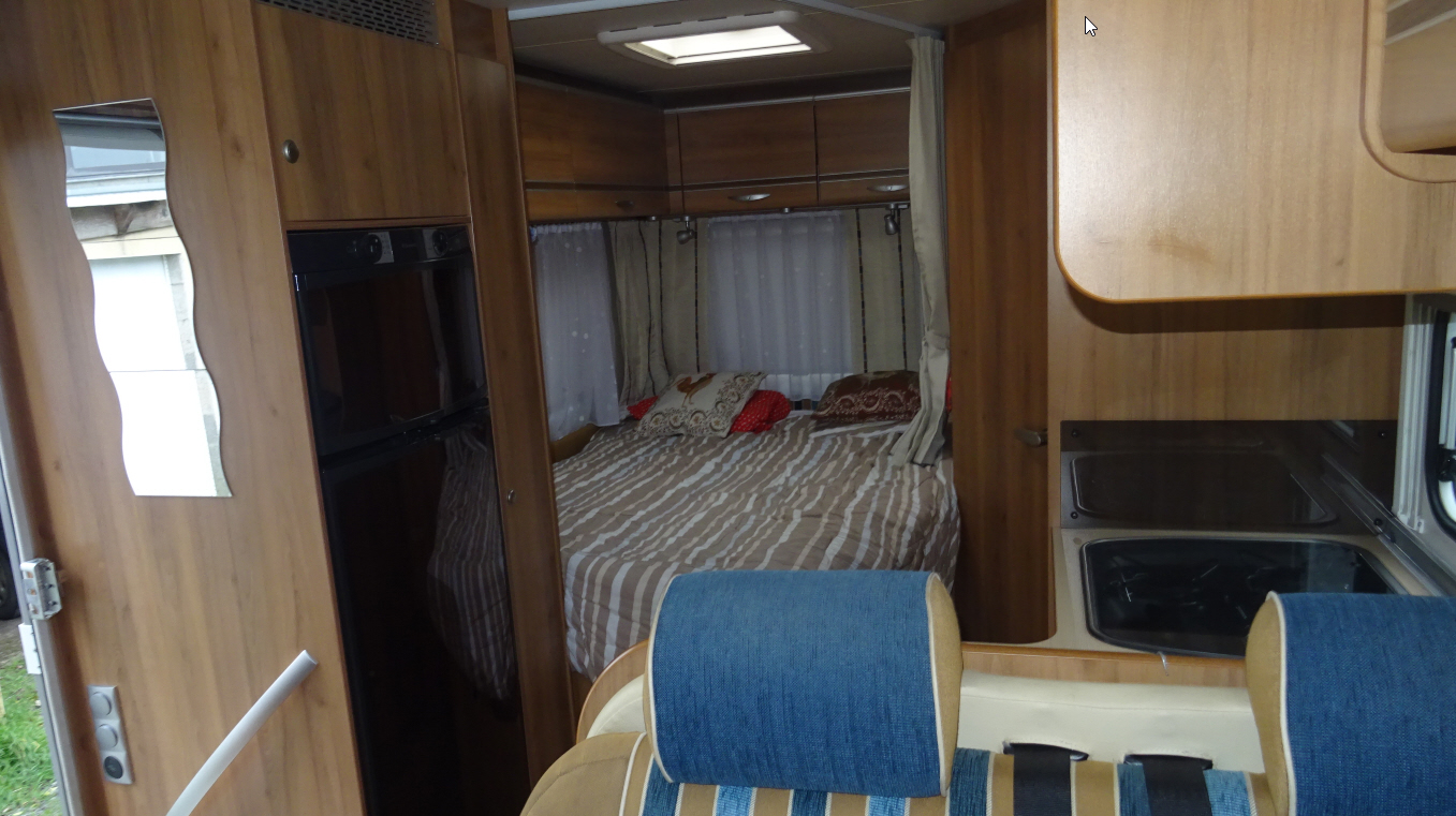 SALON : 4/6 Places 2 Places face à la route + banquette latérale + 2 places sièges cabine pivotants. Table mobile coulissante avec rallonge. Baies, 2 lanterneaux. CUISINE : En L 3 feux. Réfrigérateur 140 L + congélateur tri énergie AES. Placards coulissants. Baie projetante. COUCHAGE : Lit arrière à la française (135 x 190), sommier à lattes, axé coffre, matelas bultex épais Rangements multiples. 2 baies. Lanterneau. Lit avant transversal en transformant le salon. (130 x200). CABINET DE TOILETTE : Grande douche avec 2 cloison acrylique, lavabo wc. Lanterneau. SOUTE : Sous le lit arrière accès extérieur. Coffre sous la banquette latérale. Emplacement 2 bouteilles de gaz. EQUIPEMENTS :